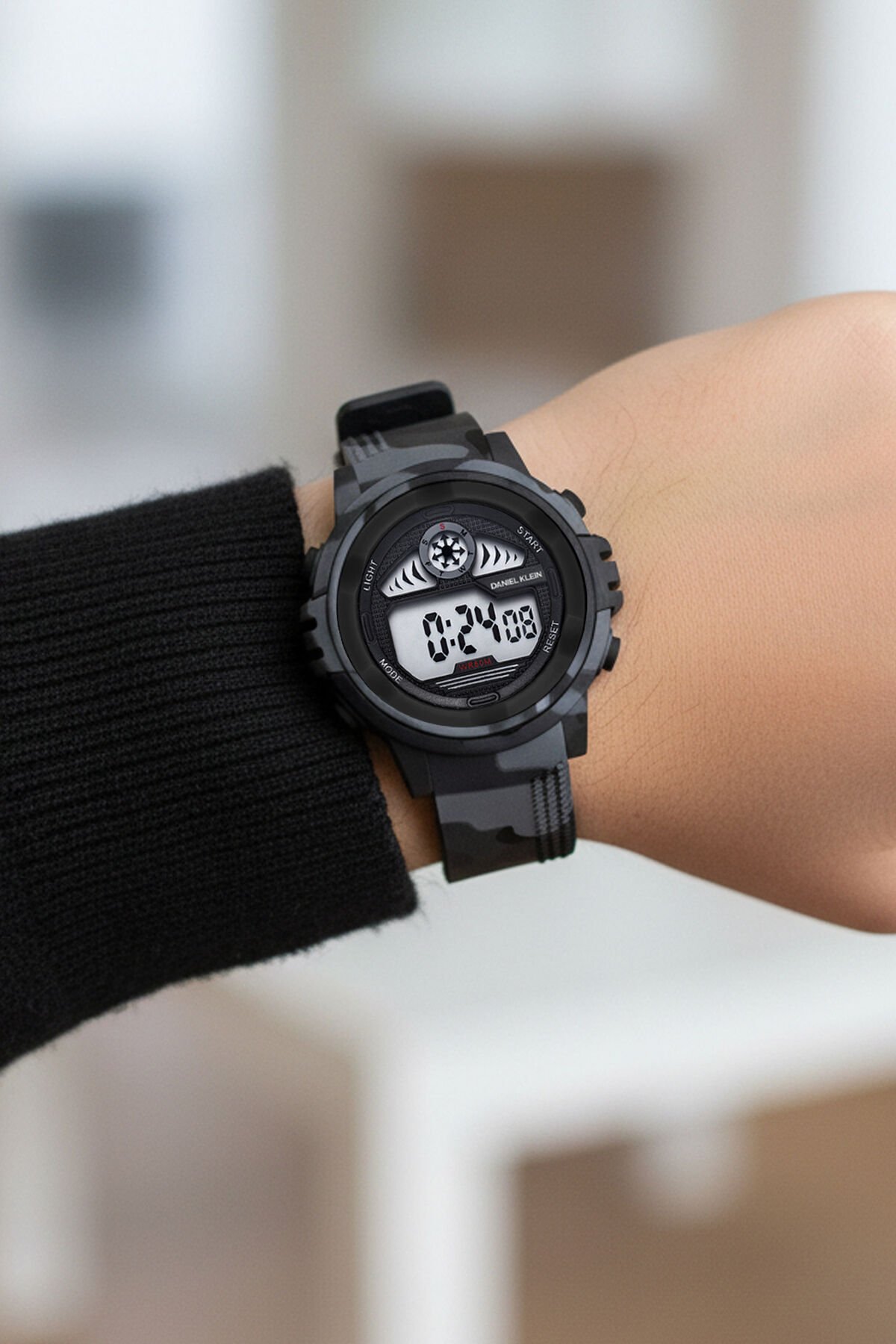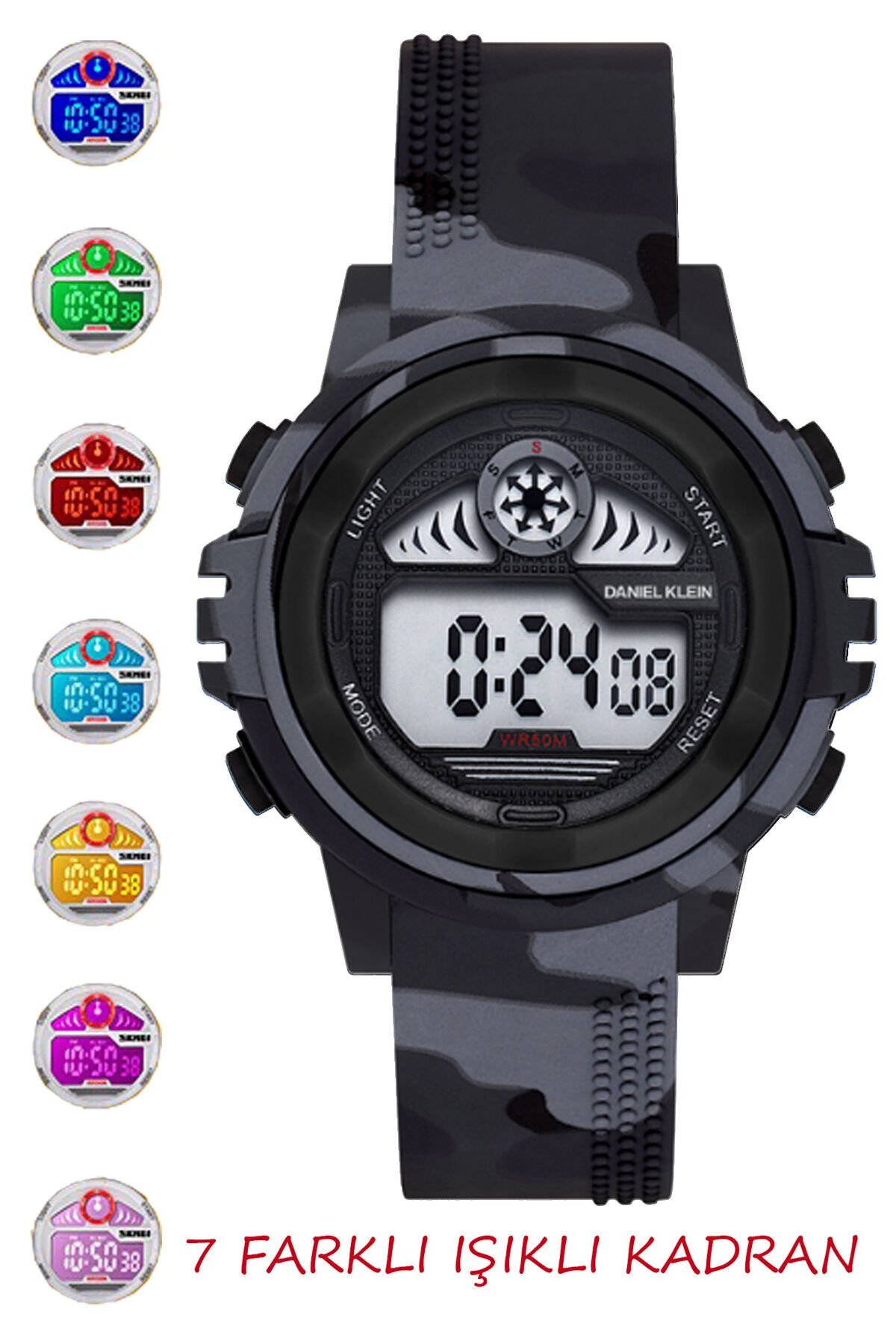 5-10 Yaş İçin, 7 Farklı Kadran Işıklı, Alarmlı, Kronometreli Siyah Kamuflaj Erkek Çocuk Kol Saati
