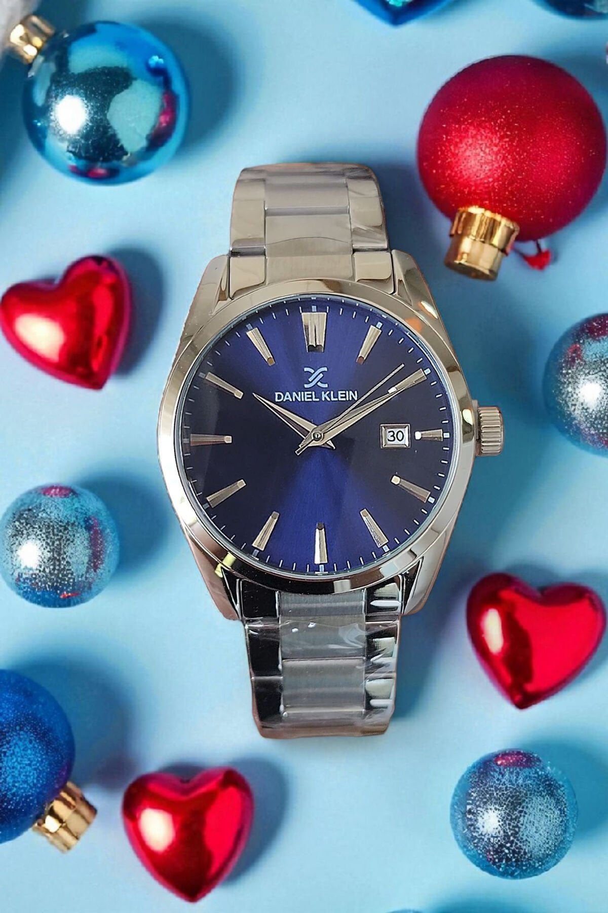 Çelik Bilezik Lacivert Kadran Metalik Erkek Kol Saati + Zincir Bileklik Hediyeli