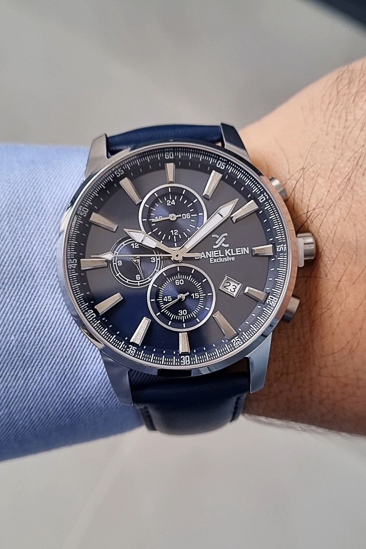 Exclusive Lacivert Deri Kayışlı Tüm Fonksiyonları Aktif Takvimli Erkek Kol Saati