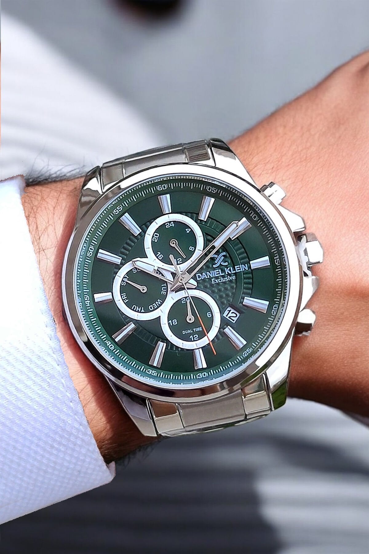 Exclusive Tüm Fonksiyonları Aktif, Takvimli, Çelik Bilezik Yeşil Kadran Erkek Kol Saati