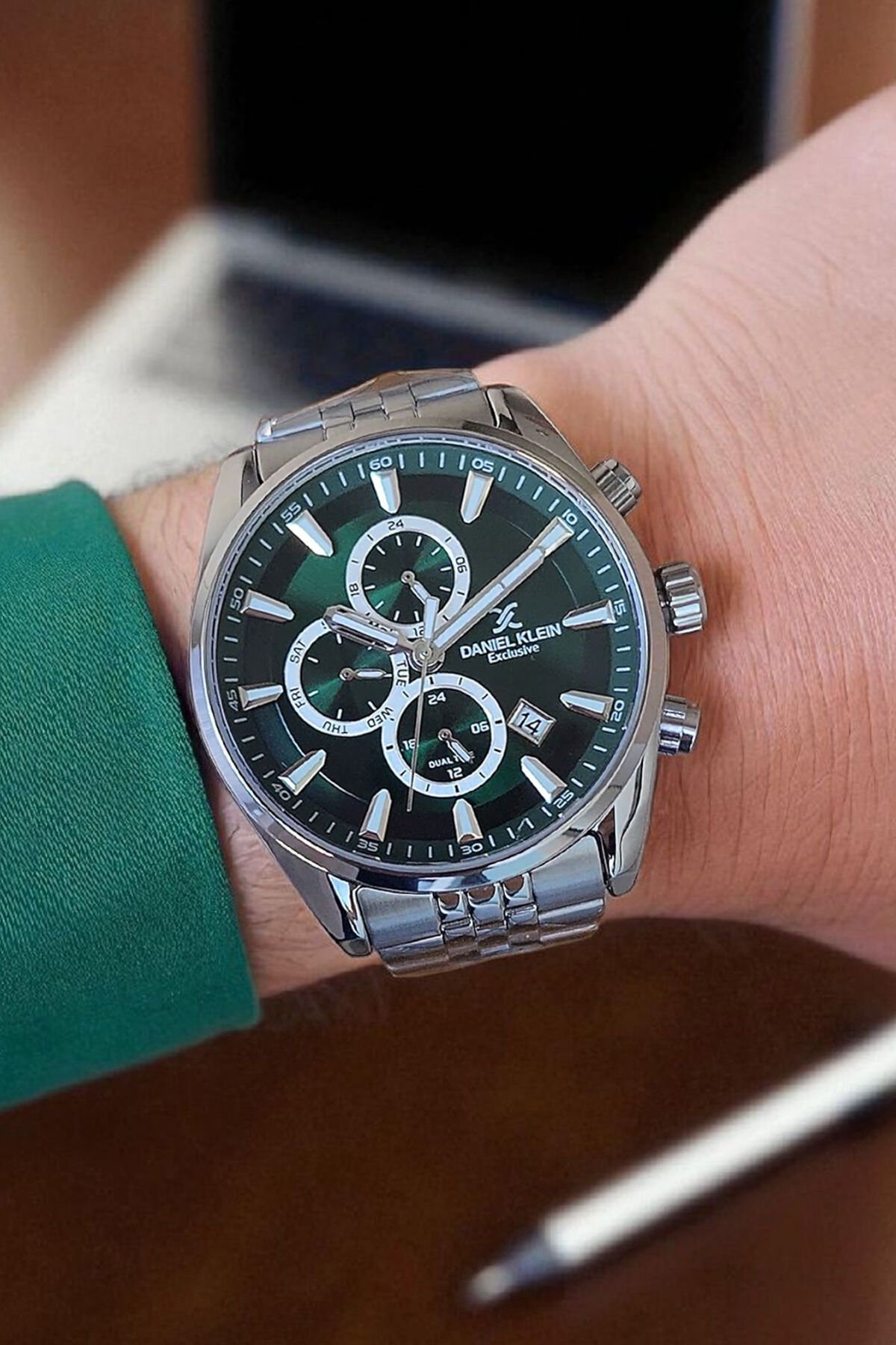 Exclusive Tüm Fonksiyonları Aktif, Takvimli, Çelik Bilezik Yeşil Kadran Erkek Kol Saati