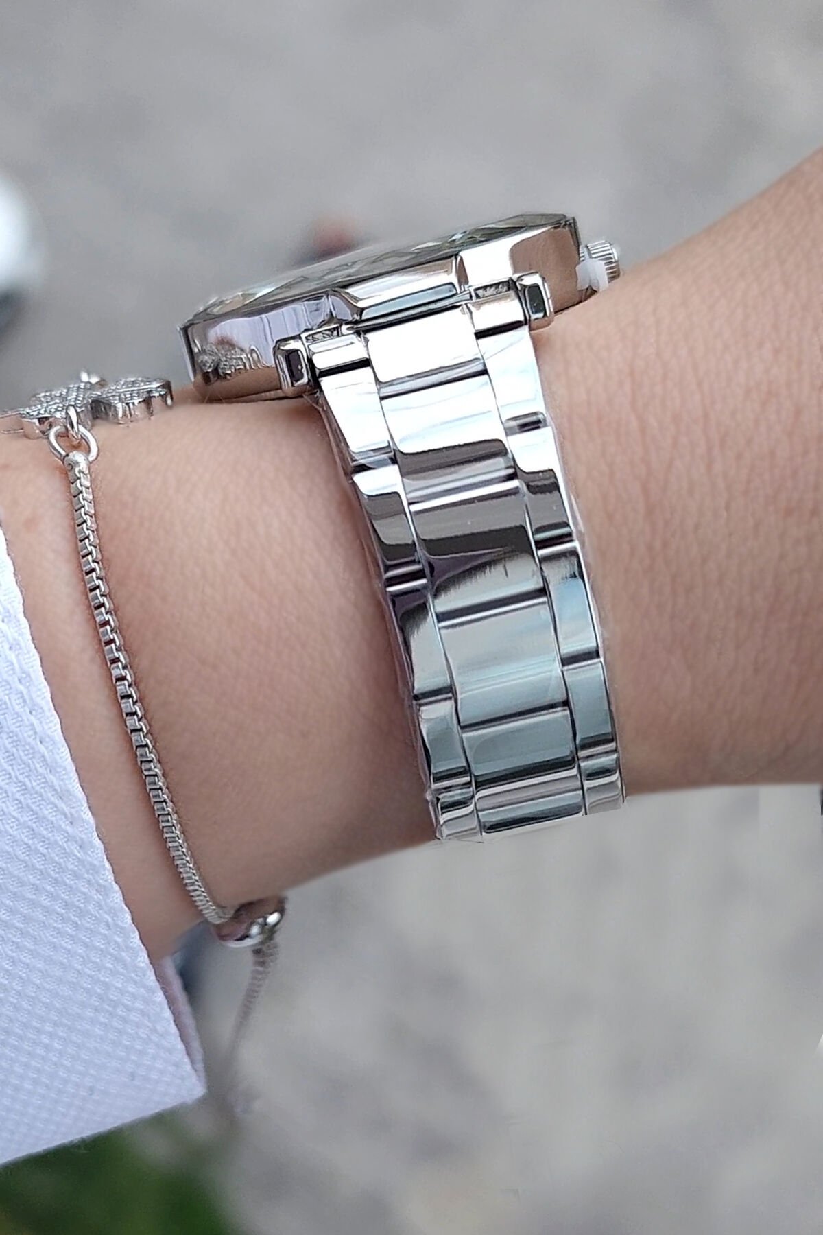 Kesme Camlı 33 mm Metalik Şık Kadın Kol Saati, Zirkon Taşlı Bileklik Hediyeli