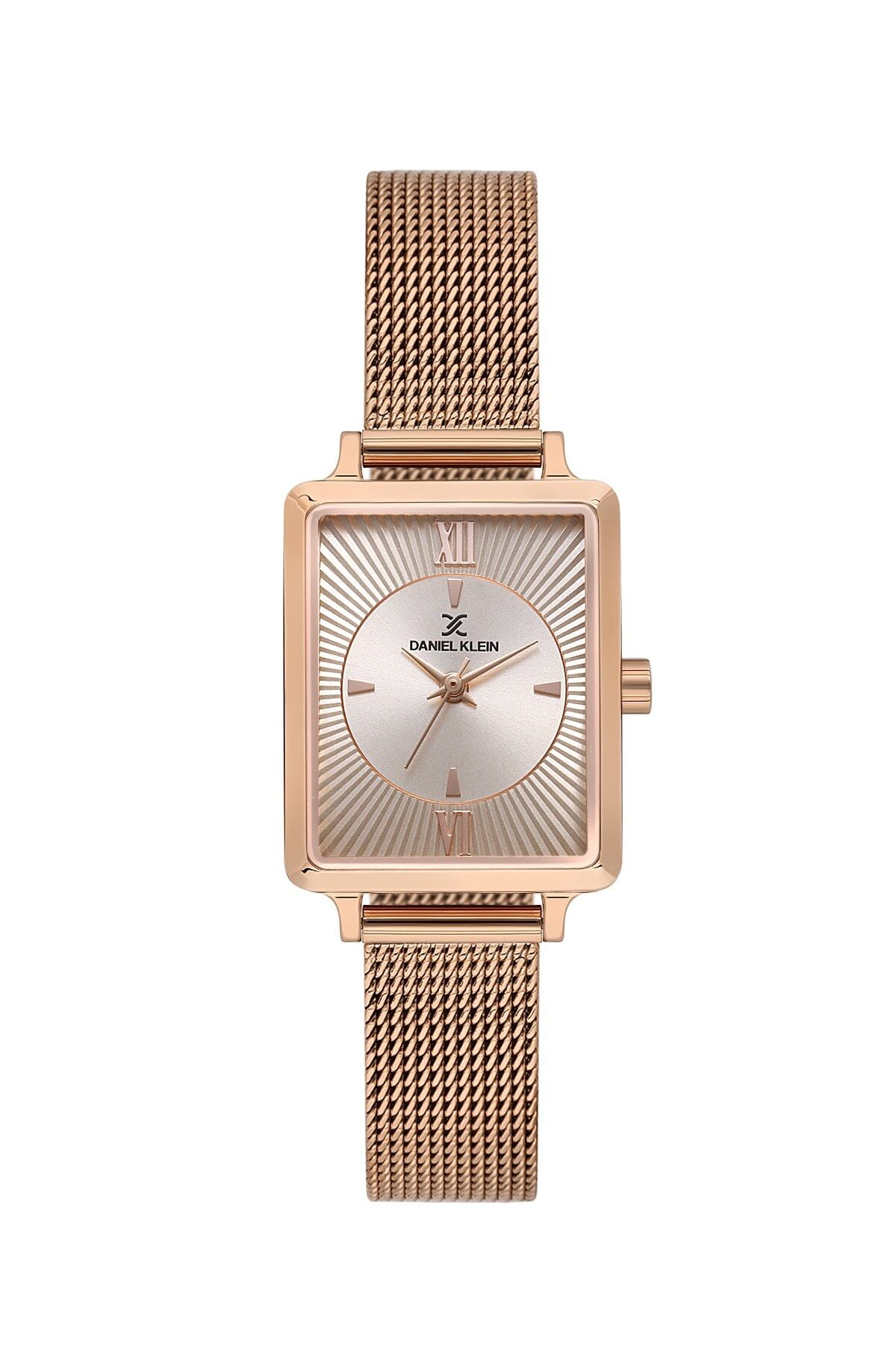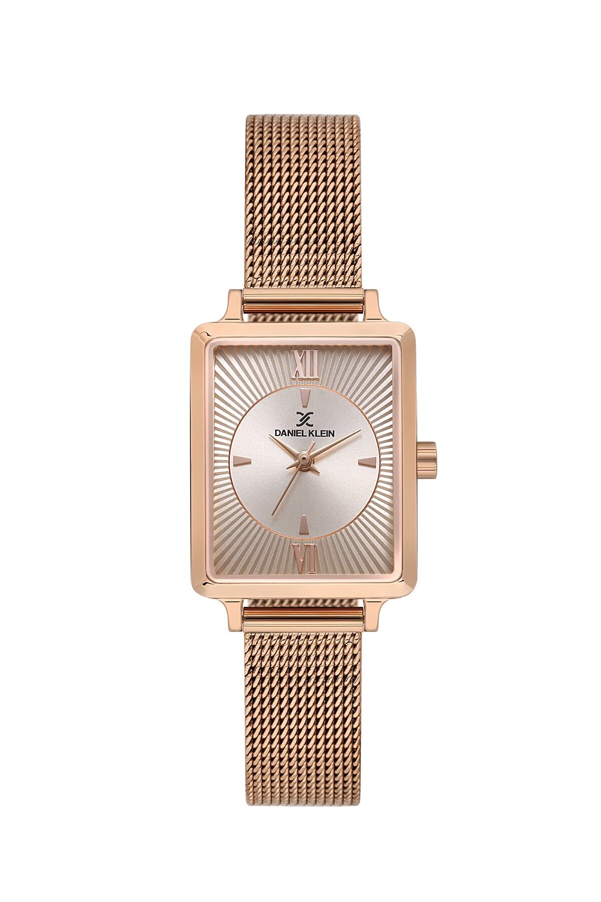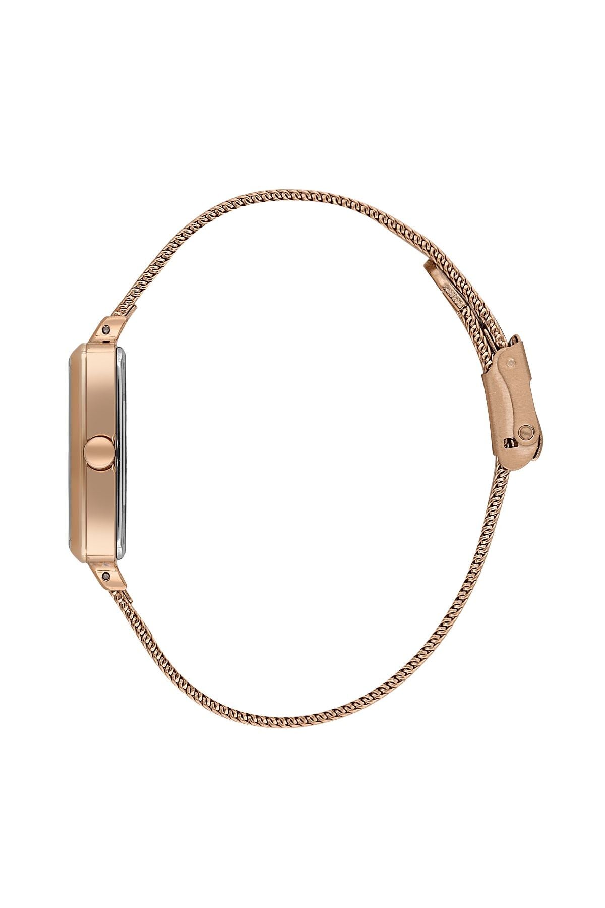 Rose Gold Hasır Çelik Bilezik 23 mm Dikdörtgen Kadın Kol Saati, Taşlı Bileklik Hediyeli