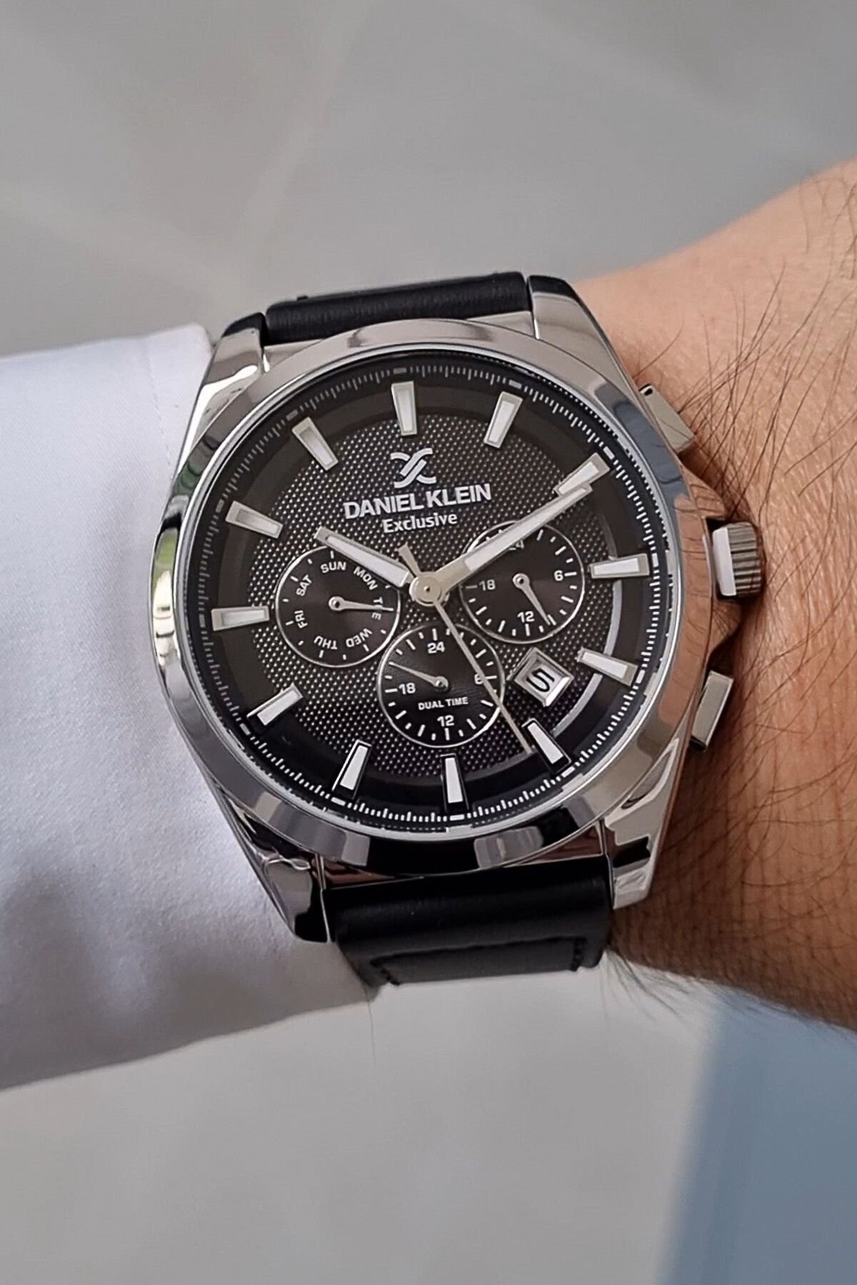 Siyah Deri Kayışlı Fonksiyonları Aktif Takvimli Erkek Kol Saati