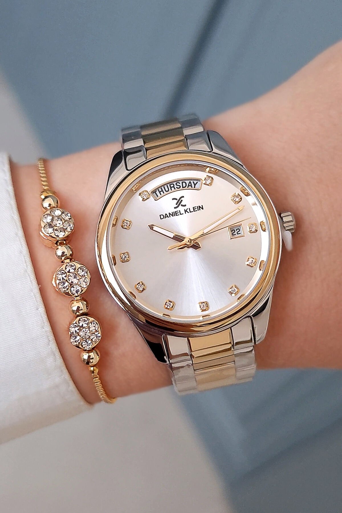 Taşlı, Takvimli, Çelik Bilezik 34 mm Altın/Metalik Kadın Kol Saati, Taşlı Bileklik Hediyeli