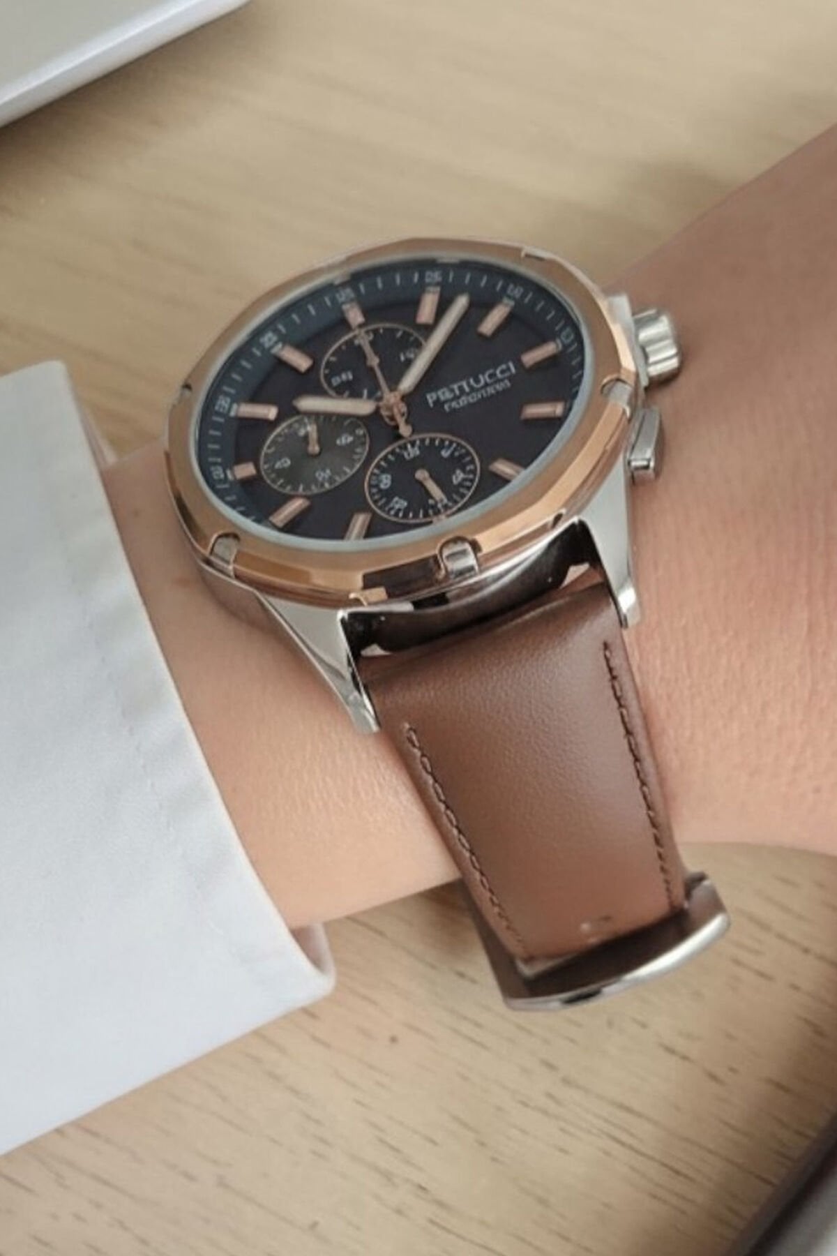 Tüm Fonksiyonları Aktif Kahverengi Deri Kayışlı Erkek Kol Saati
