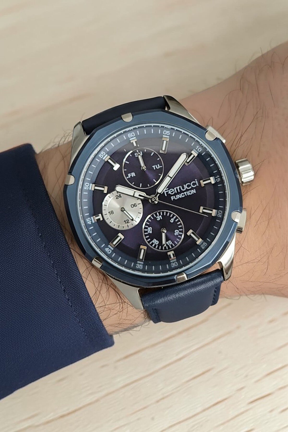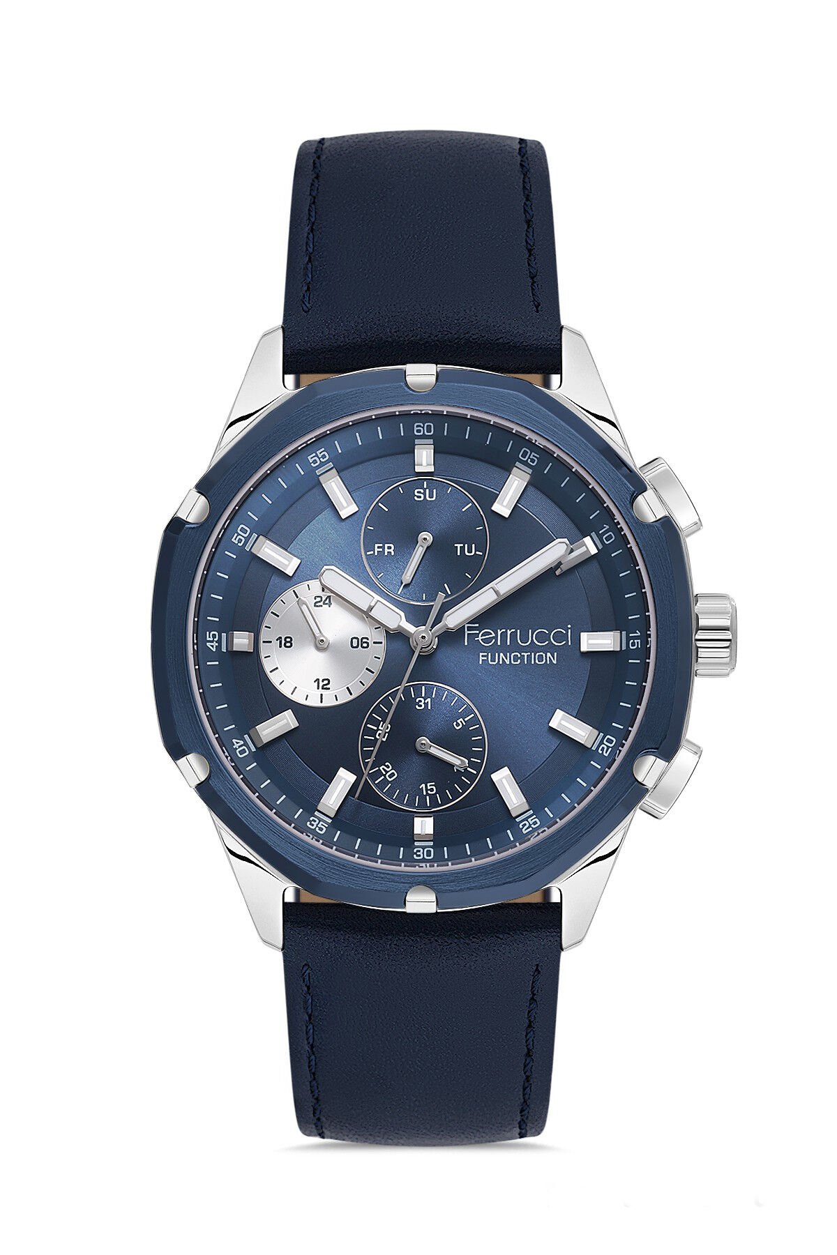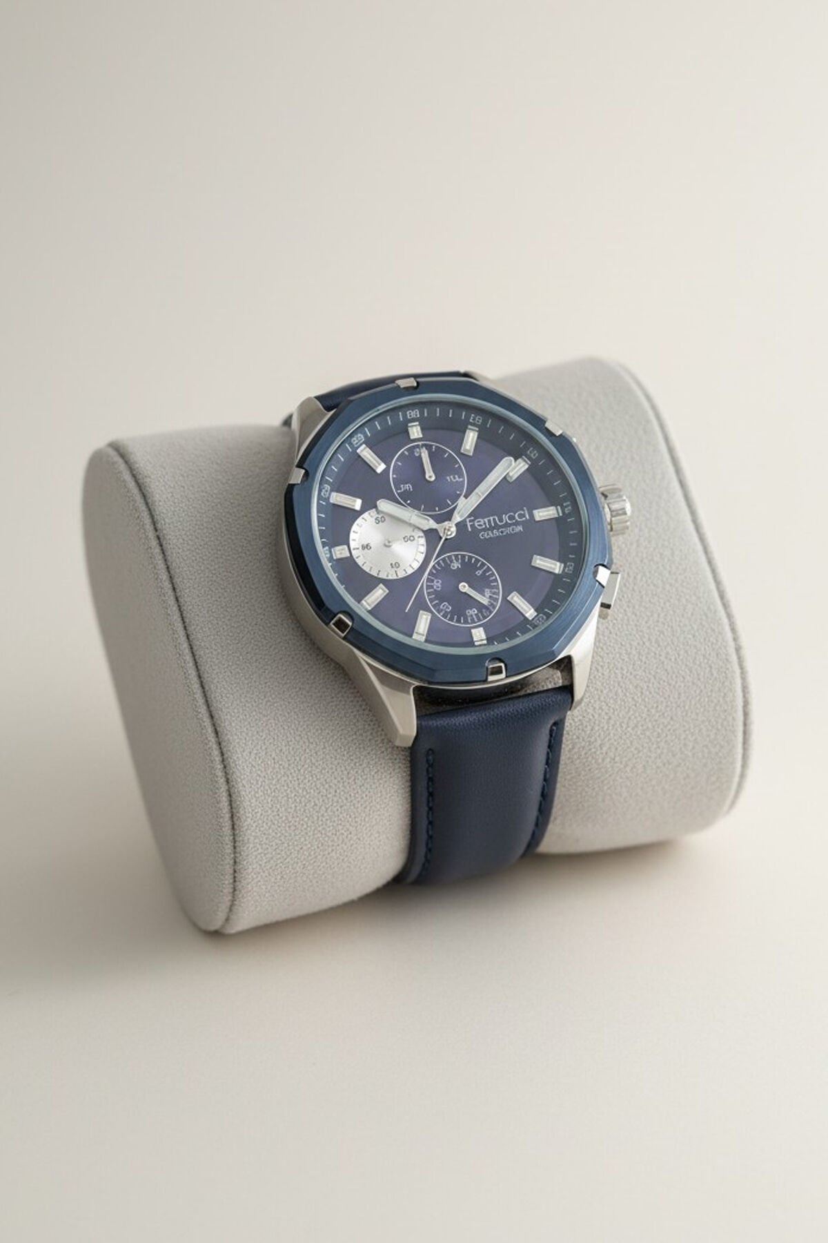 Marka: Ferrucci ; Çap: 44 mm ; Kasa Materyali: Metal ; Kordon Materyali: Deri Kayış ; Kasa Rengi: Gümüş ; Kordon Rengi:Lacivert ; Kadran Rengi: Lacivert ; Cam: Mineral ; Ekran Tipi: Analog ; Mekanizma: Pilli ; Suya Dayanıklılığı:3 ATM El/Yüz Yıkama ; Alarm: Yok ; Kronometre: Yok; Takvim: Yok ; 2 yıl Garanti Distribütör Firmamız ARIKAN güvencesiyle...