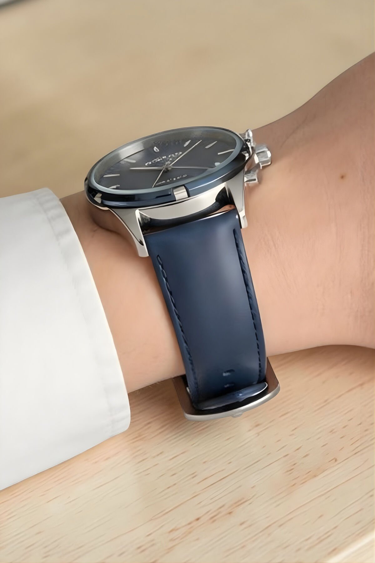 Tüm Fonksiyonları Aktif Lacivert Deri Kayışlı Erkek Kol Saati