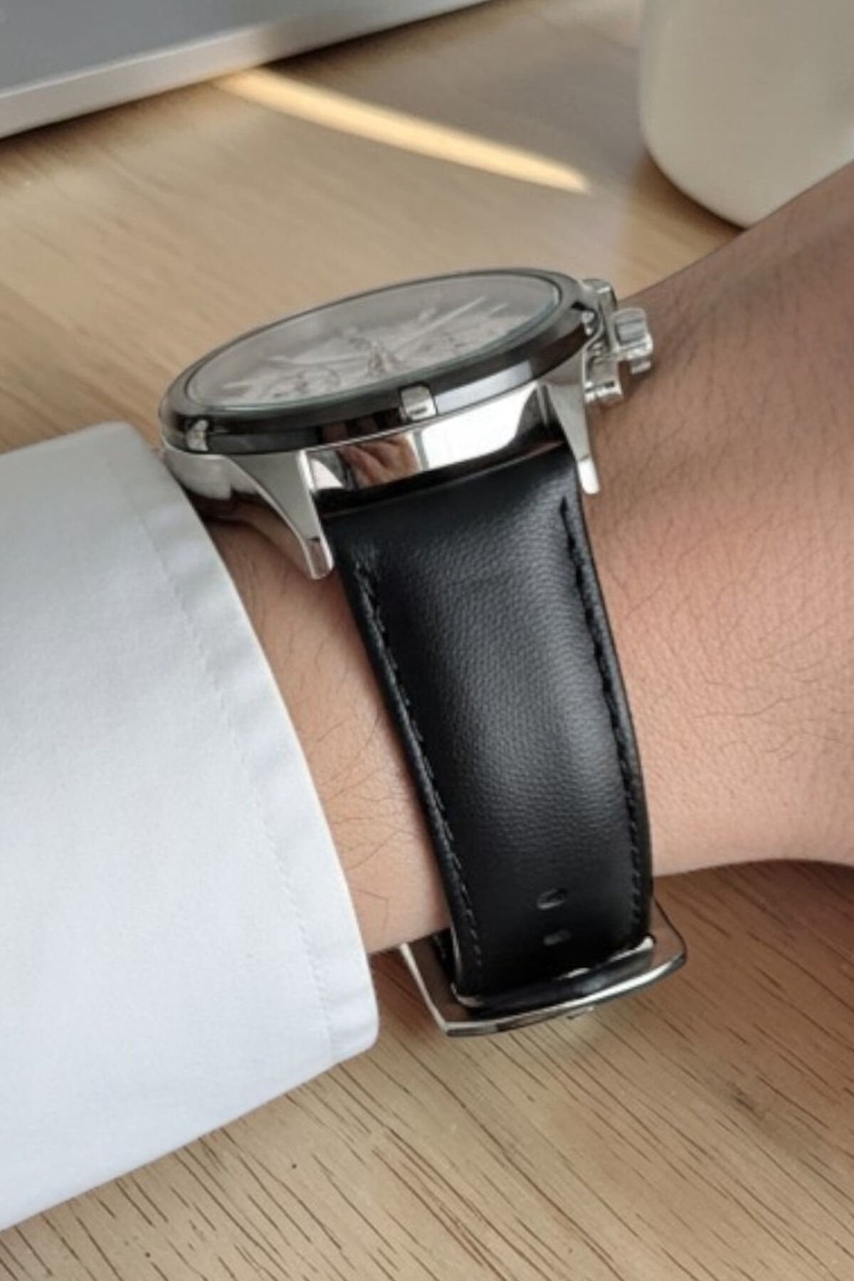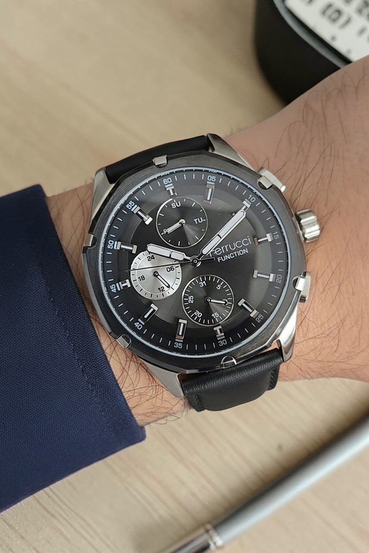 Tüm Fonksiyonları Aktif Siyah Deri Kayışlı Erkek Kol Saati