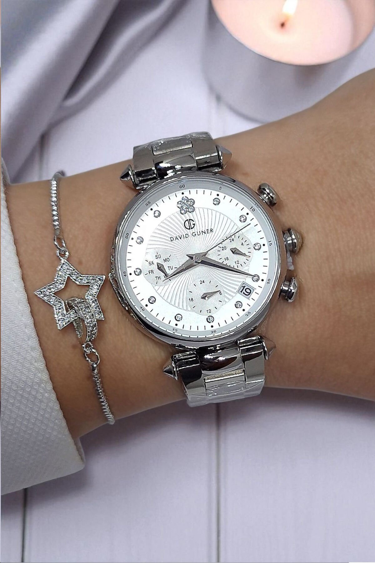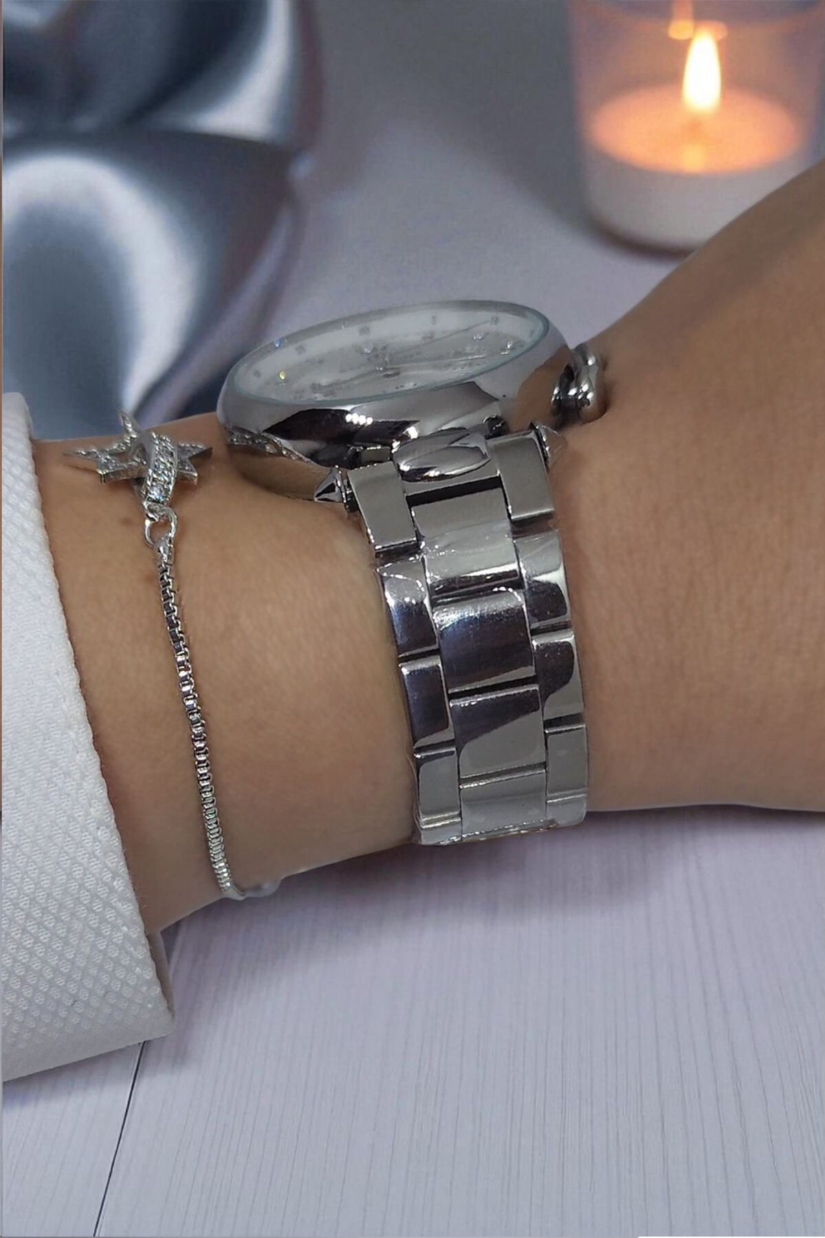 Tüm Fonksiyonları Aktif, Takvimli, Taşlı Çelik Bilezik Metalik Kadın Kol Saati Bileklik Hediyeli