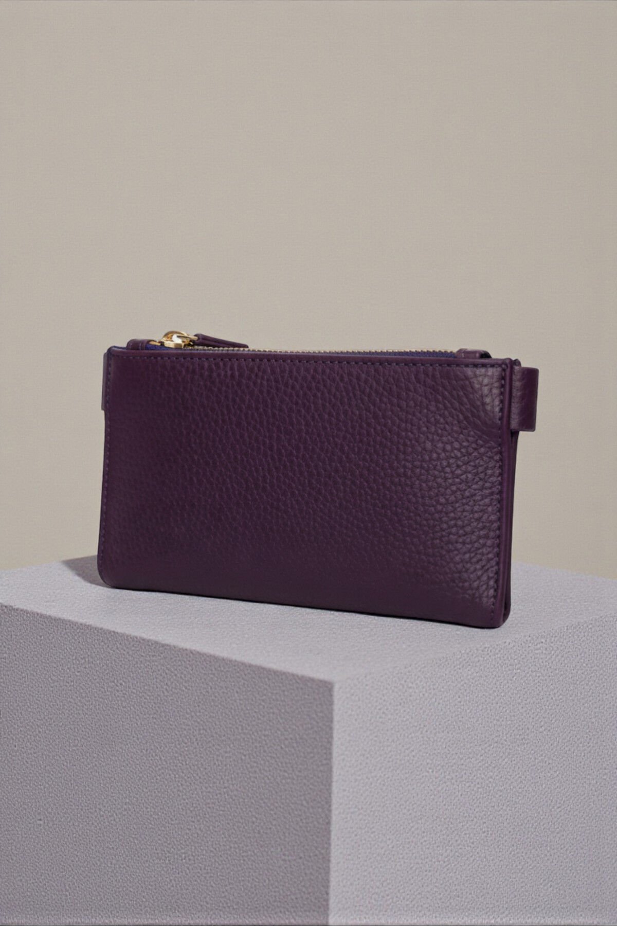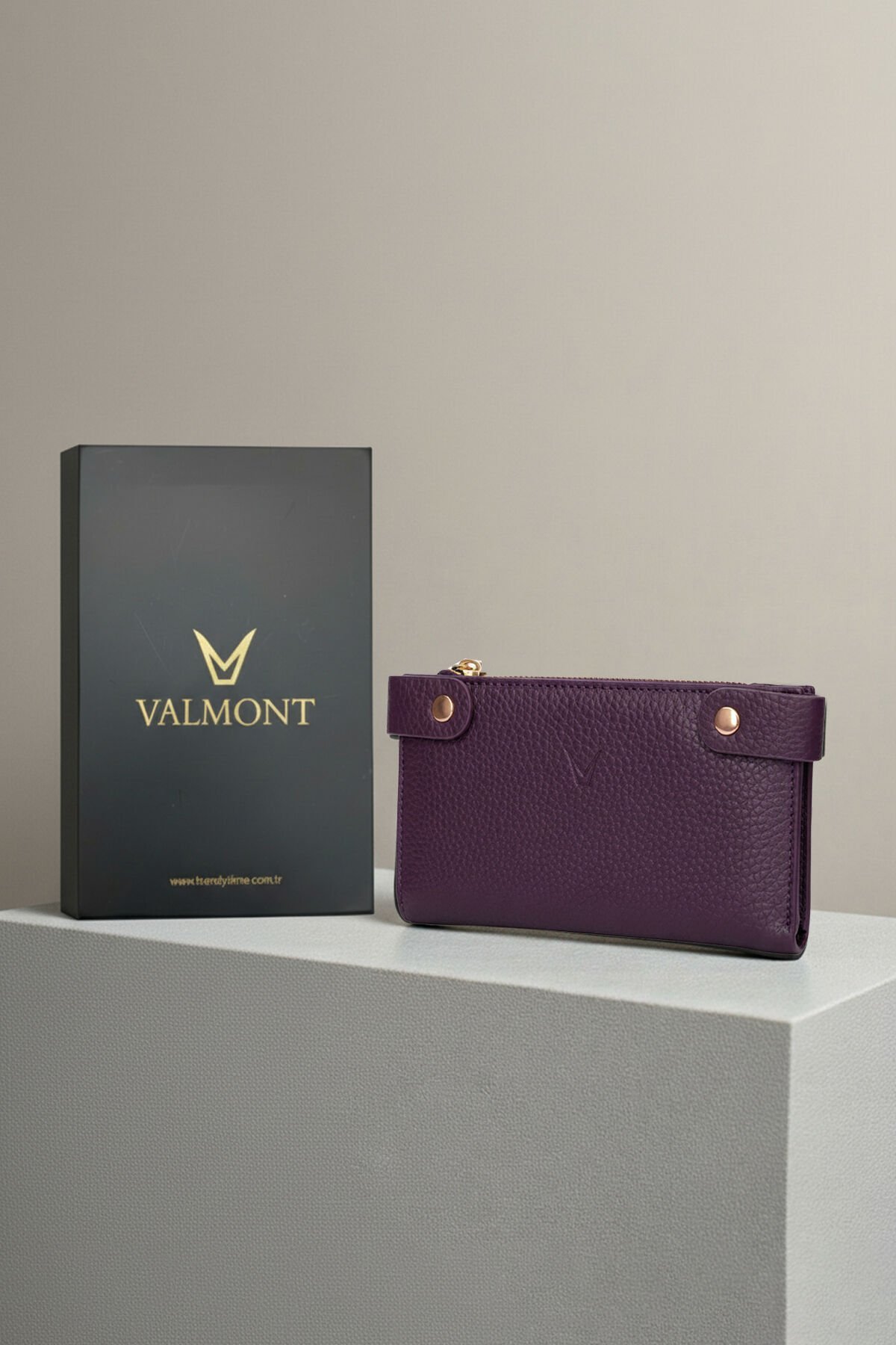 Valmont Özel Kutulu, Fermuarlı, Kartlıklı, Çok Bölmeli Mor Şık Deri Kadın Cüzdanı