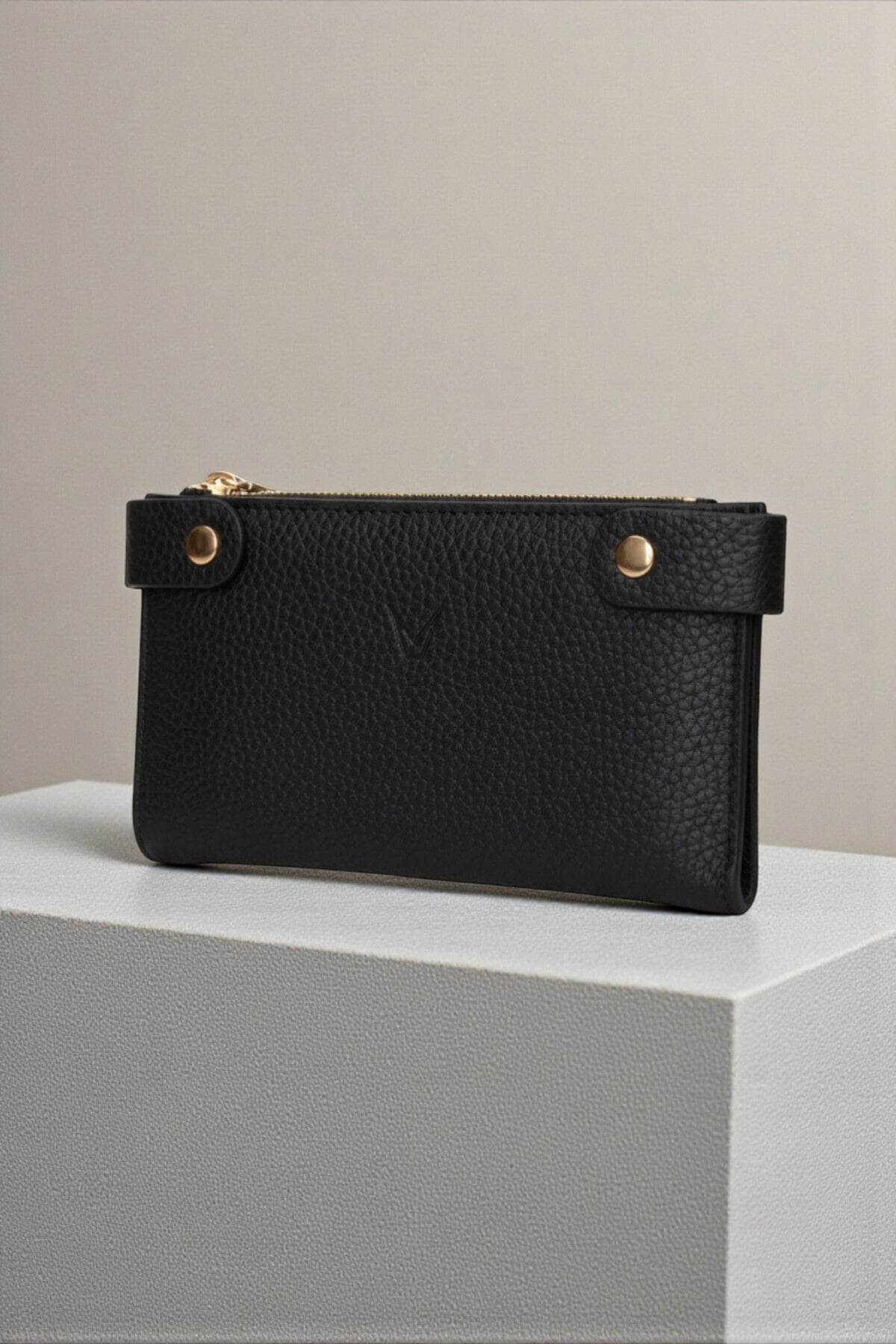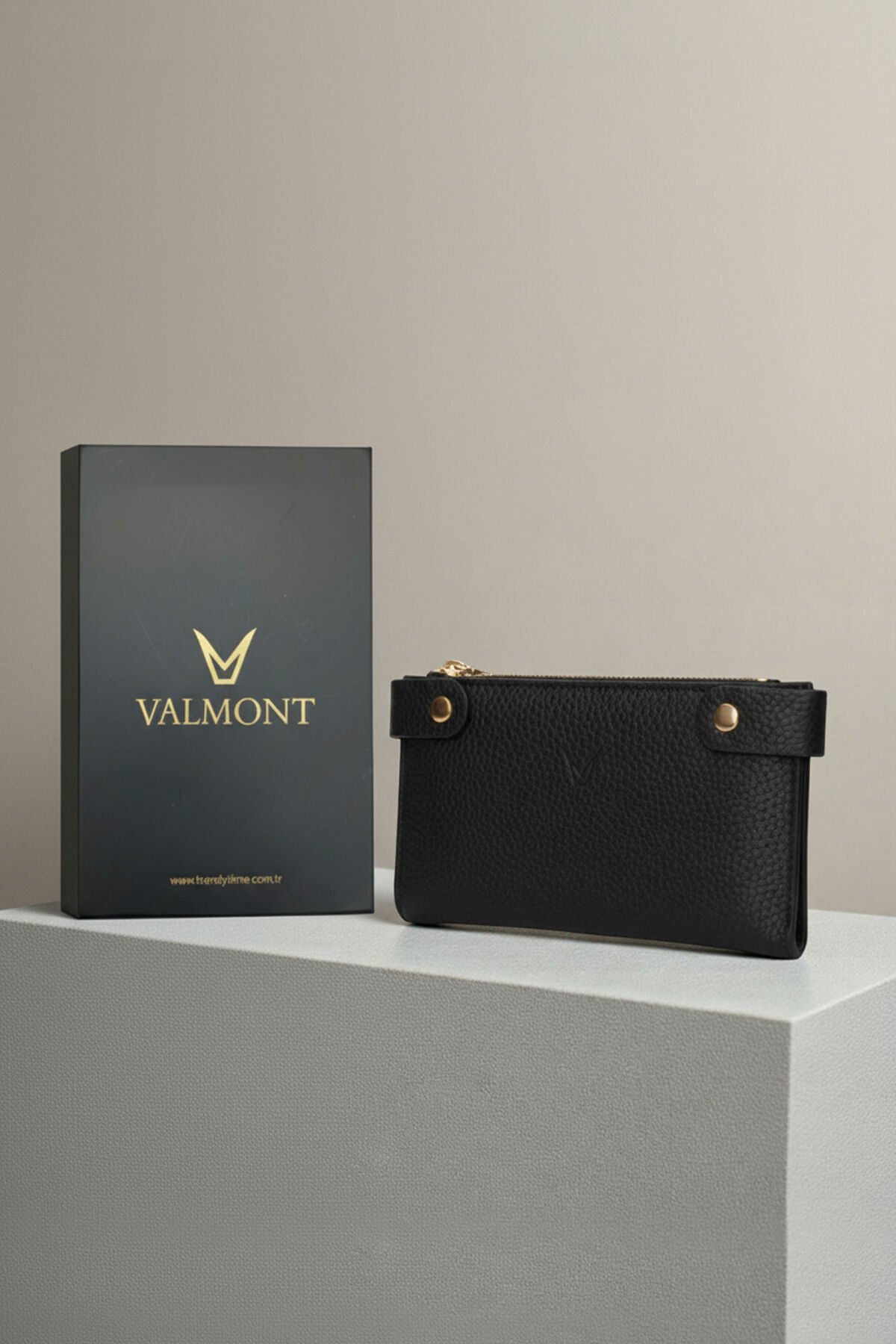 Valmont Özel Kutulu, Fermuarlı, Kartlıklı, Çok Bölmeli Siyah Şık Deri Kadın Cüzdanı