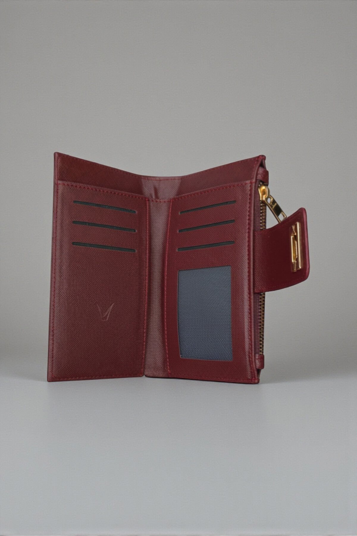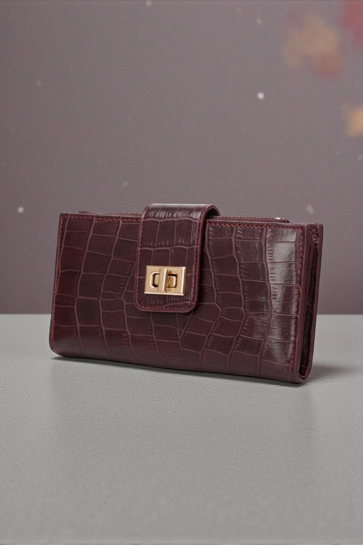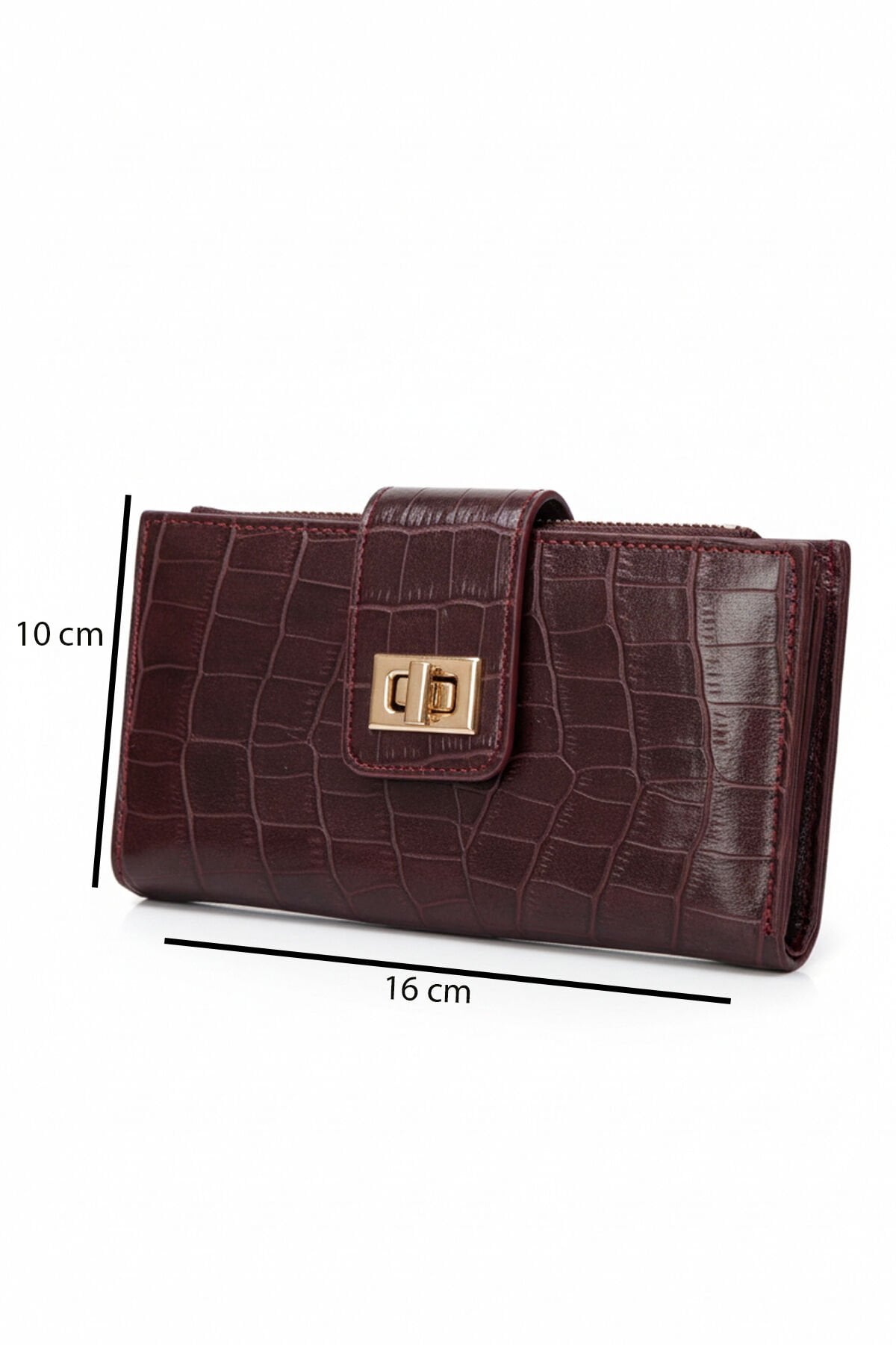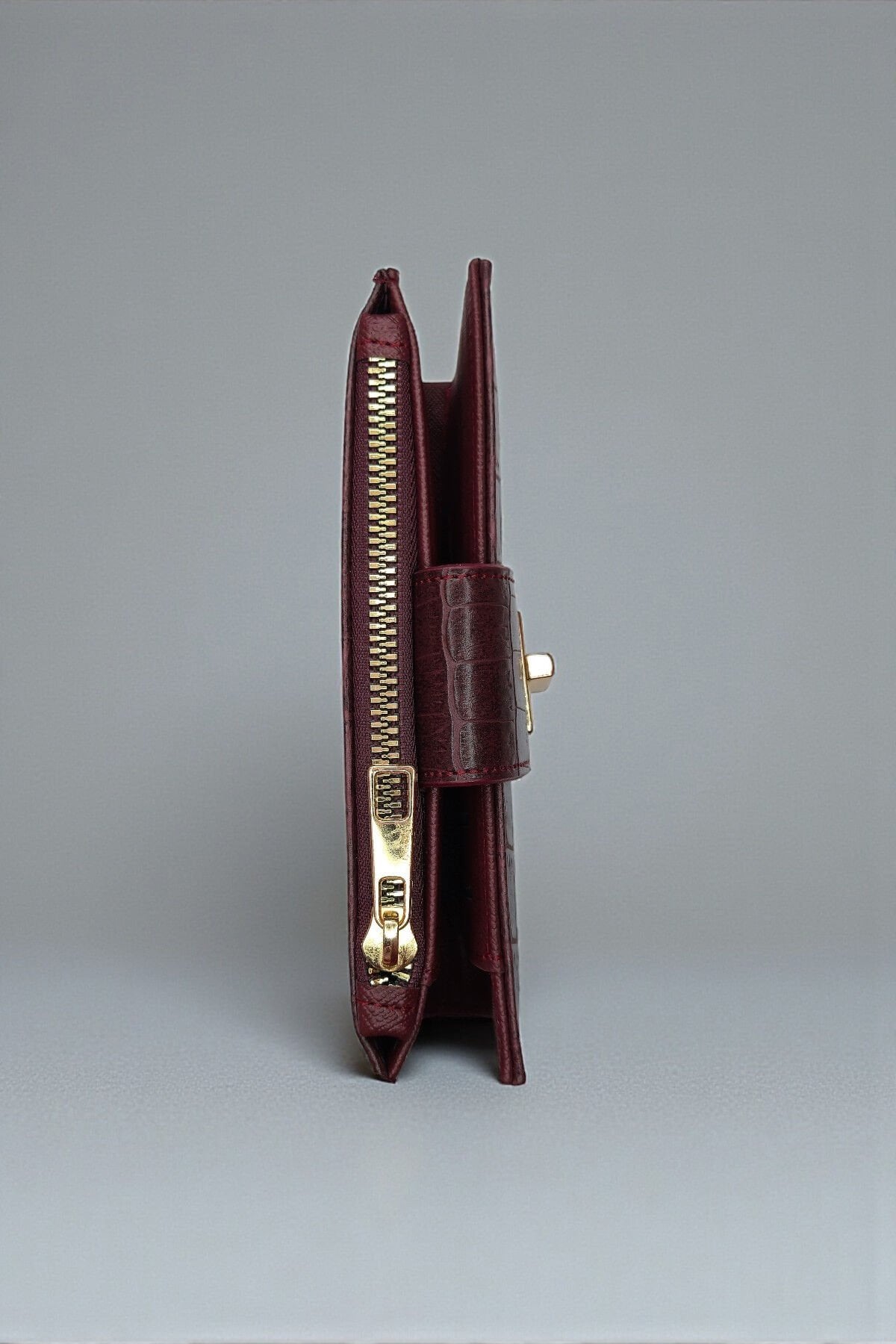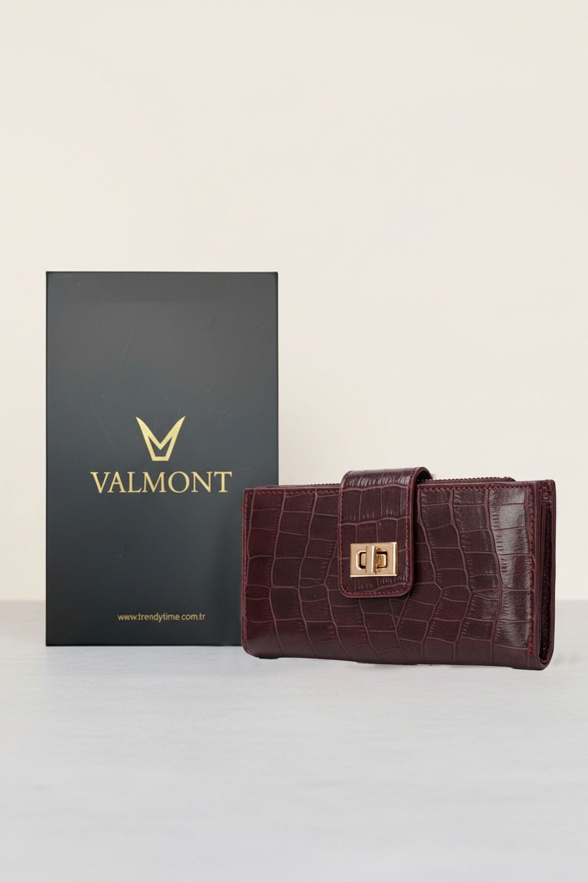 Valmont Özel Kutulu, Timsah Deseni Görünümlü, Kredi Kartı Gözlü Bordo Deri Şık Kadın Cüzdanı