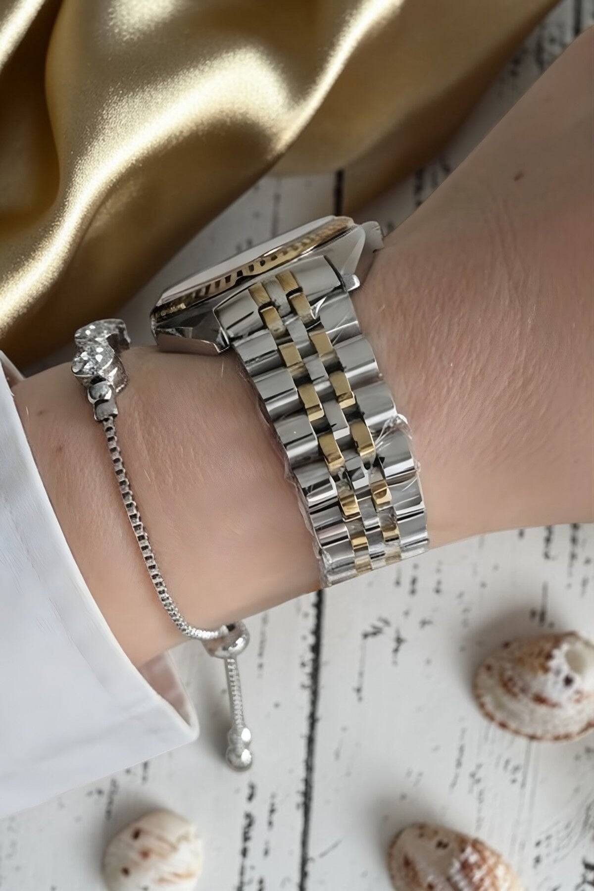 Yeni Model Çelik Bilezik Altın / Metalik Kadın Kol Saati + Zirkon Taşlı Bileklik