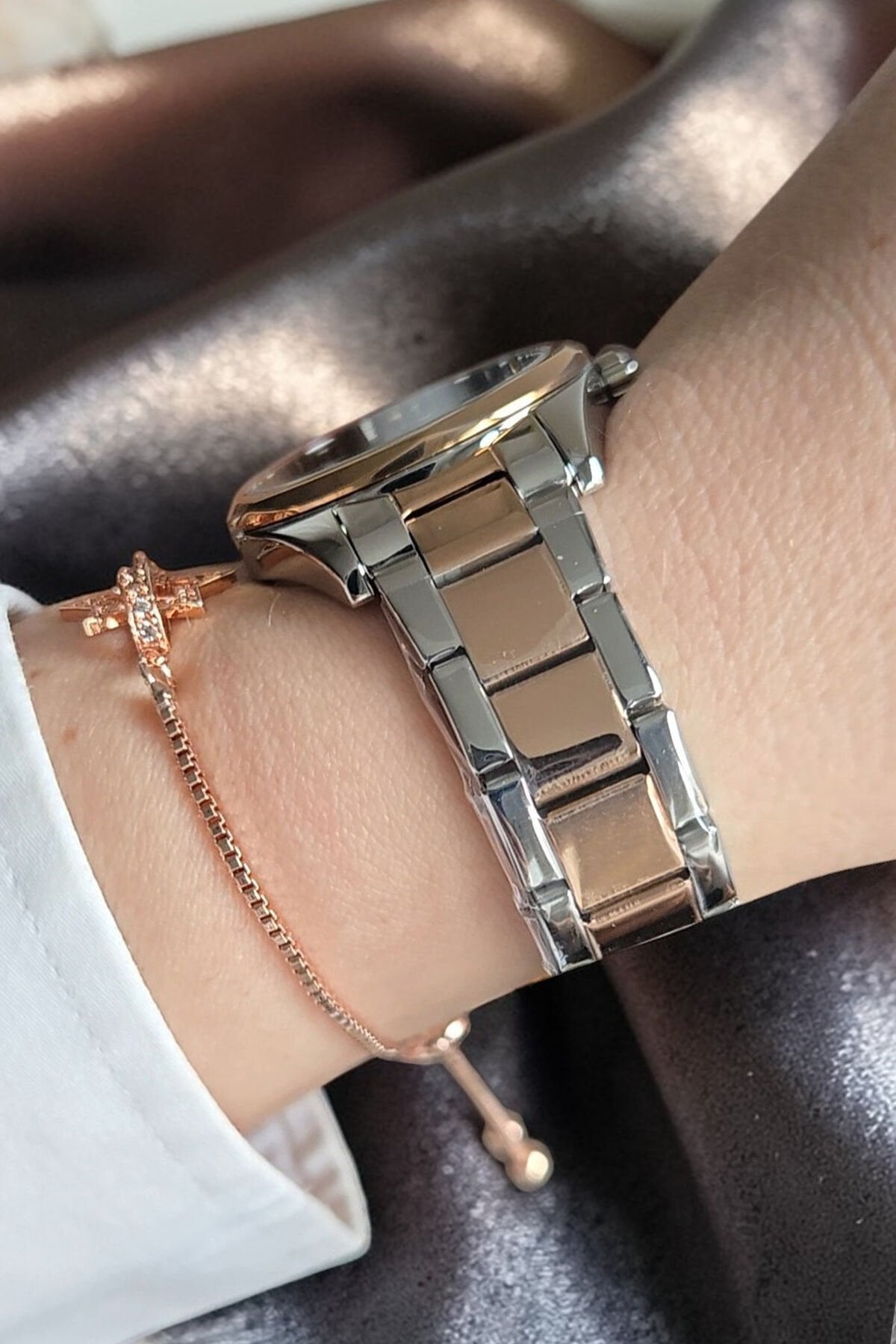 Yeni Model Çelik Bilezik Rose / Metalik Kadın Kol Saati + Zirkon Taşlı Bileklik