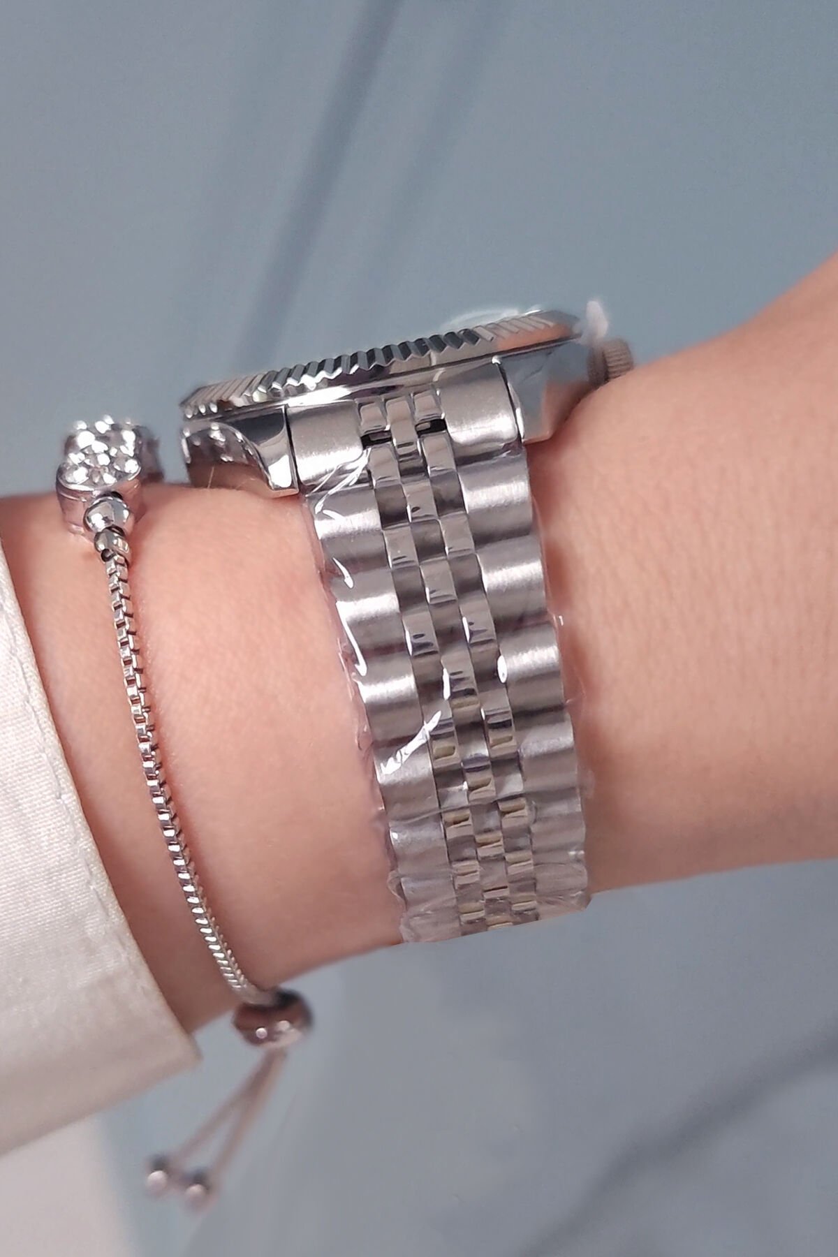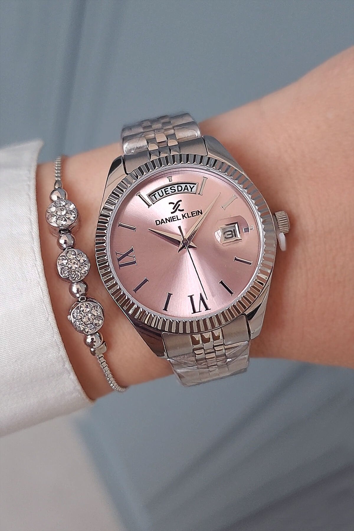 Yeni Model Jübile Bilezik Takvimli Açık Pembe Kadranlı Kadın Kol Saati, Taşlı Bileklik Hediyeli