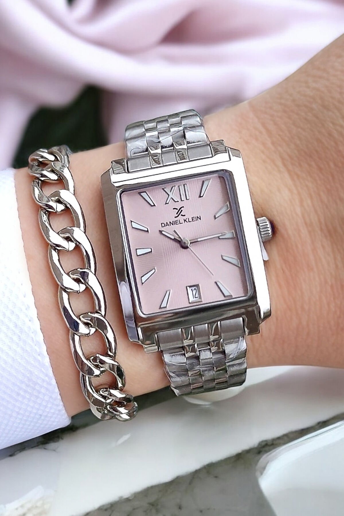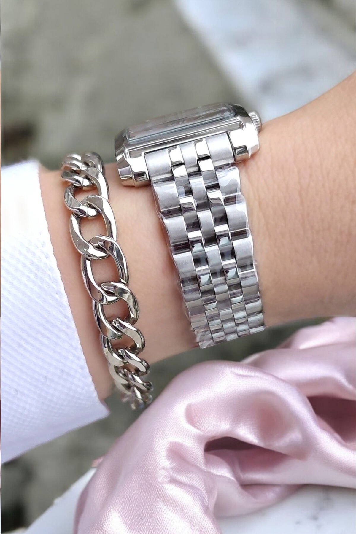 Yeni Model Kare Kasa Zincirli 3 ATM Su Geçirmez Pembe Kadran Kadın Kol Saati, Zincir Bileklik Hediye