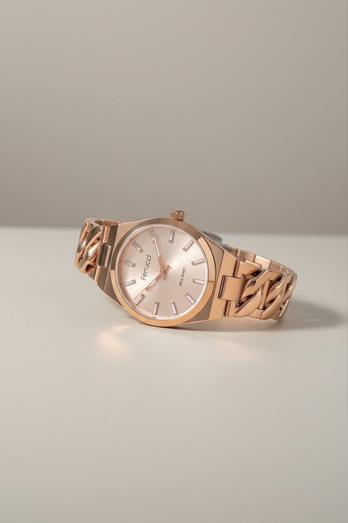 Zİncirli Model Çelik Bilezik Rose Gold Kadın Kol Saatİ