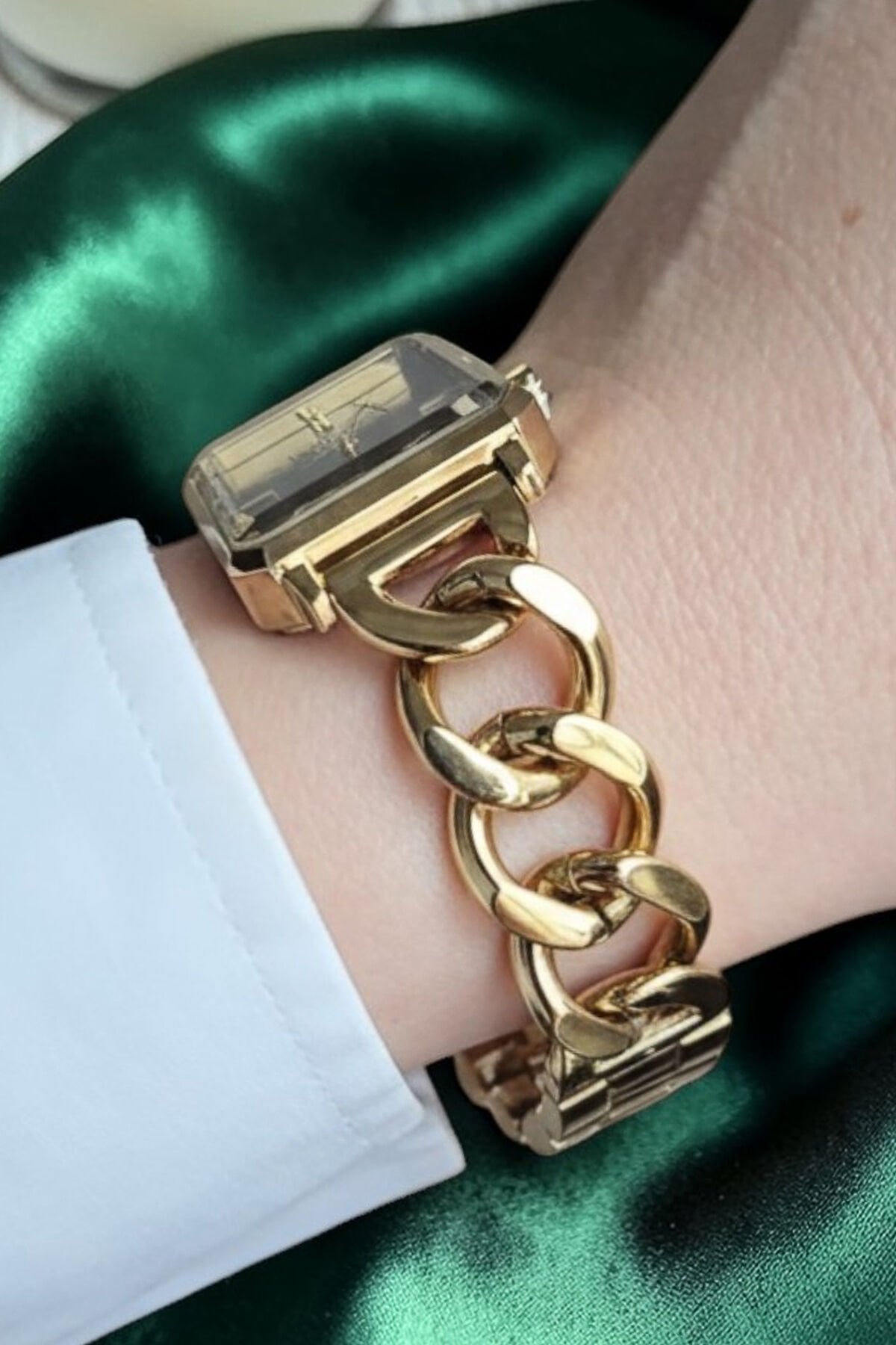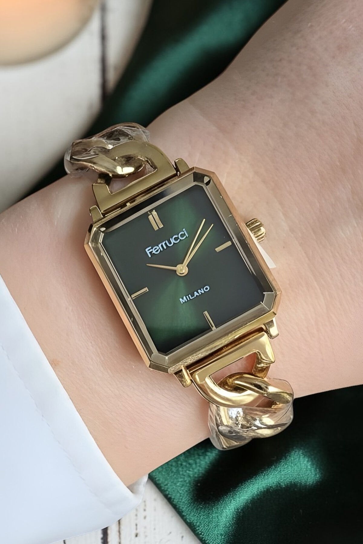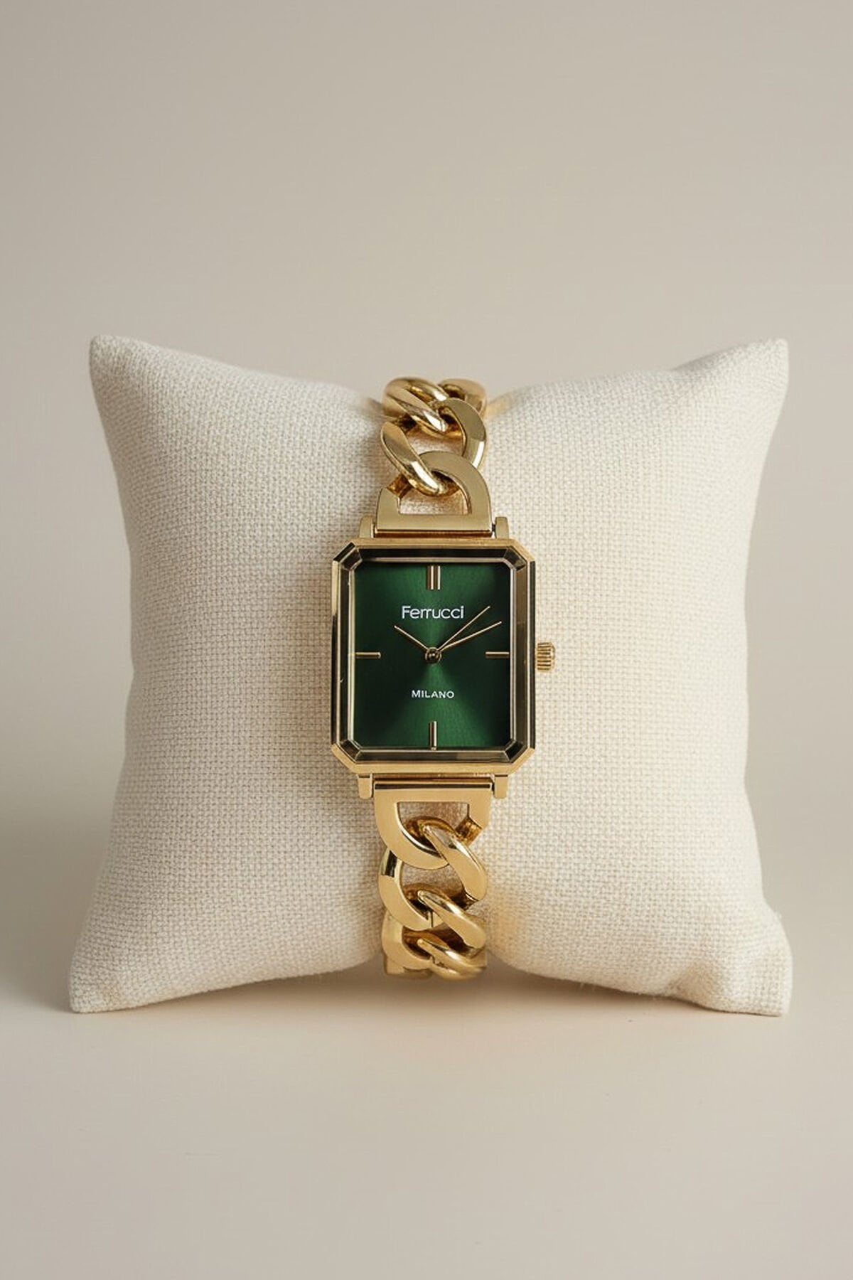 Zincirli Model Çelik Bilezik Altın Sarısı /Yeşil Kadran Kadın Kol Saati